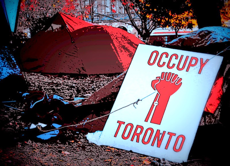 But what I thought was most ironic was that the church where the service took place is right next to the park where Occupy Toronto once pitched its tents . . .